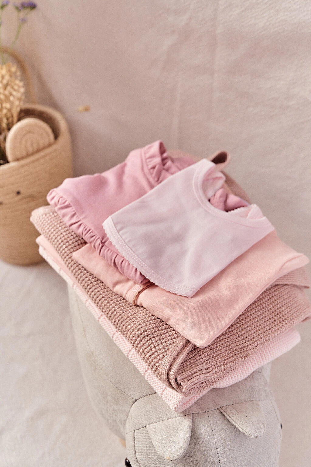Cuidados: lavar a mano con jabón específico para bebés con ph neutro para cuidar la prenda y la piel del bebé.