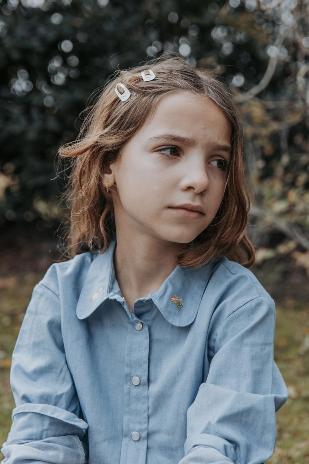 Esta blusa de manga larga para nenas tiene un detalle bordado en el cuello que la hace única y especial. Viene en blanco o celeste, y cada color tiene un bordado distinto, delicado y lleno de encanto. Su corte es cómodo, con botones al frente y un tejido liviano ideal para usar en cualquier época del año. Para looks más arreglados o para sumar a un outfit de todos los días con un toque distinto.