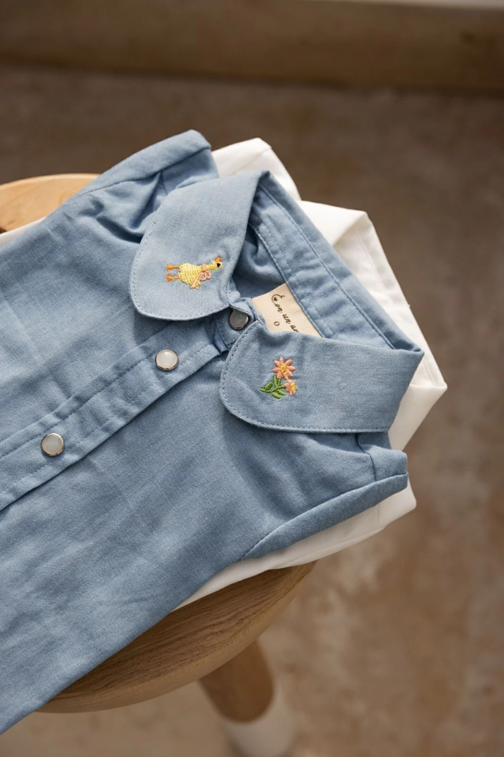 Este body blusa de manga larga con cuello bordado es puro detalle y delicadeza. Viene en blanco o celeste, y cada color tiene un bordado distinto en el cuello, pensado especialmente para las más chiquitas. Su diseño combina el look de una camisa con la practicidad de un body: tiene botones al frente y broches en la parte de abajo para cambiar fácilmente. Ideal para ocasiones especiales o para sumar un toque lindo a cualquier día.