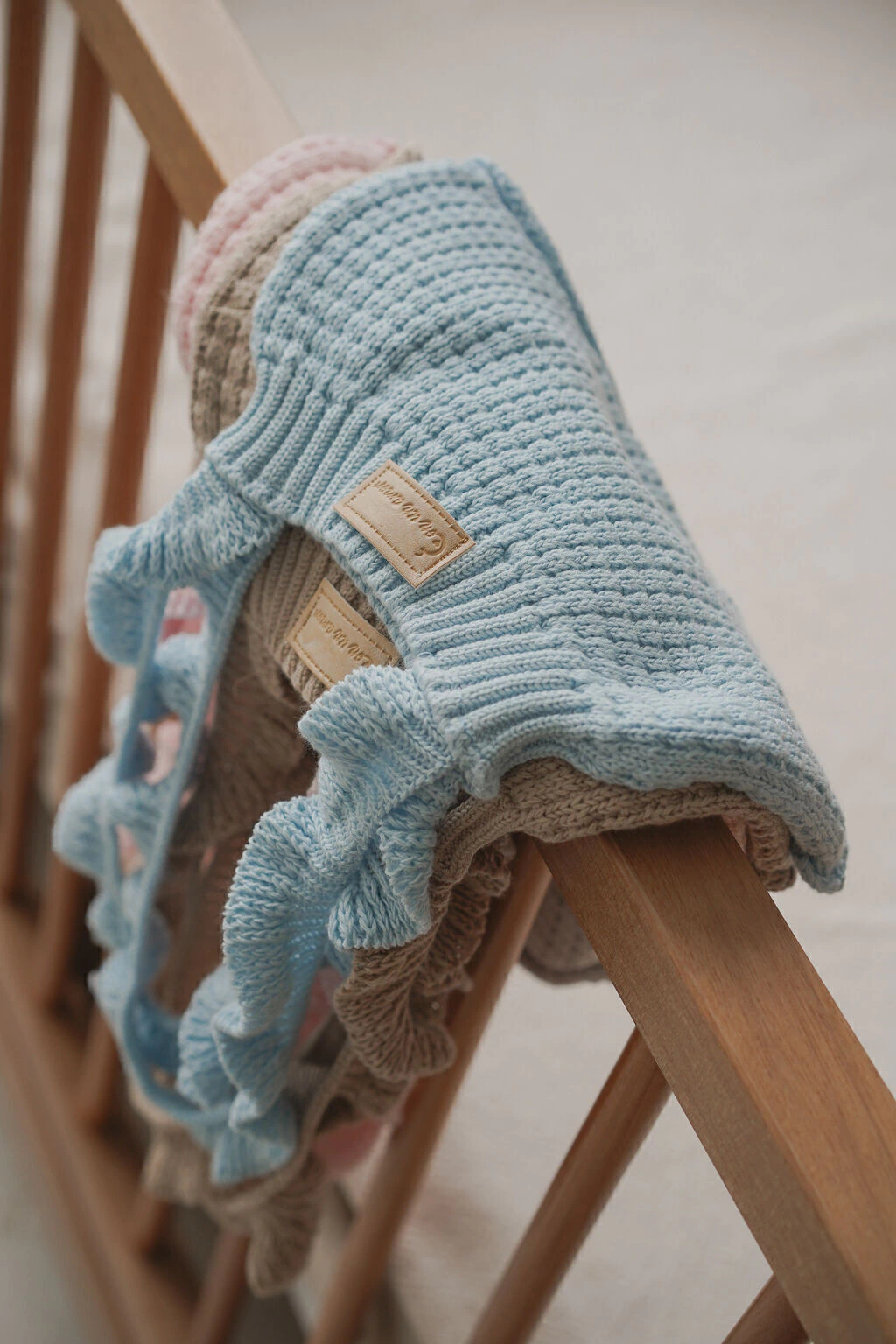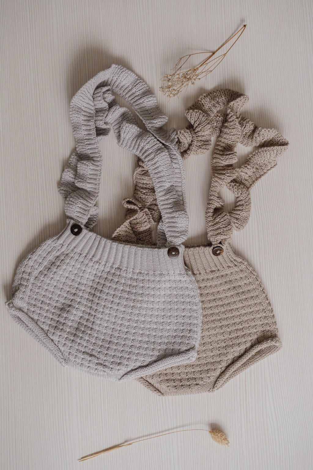 Bombacha Lyon, tejida en punto waffle. Cintura con elastano para mayor ajuste. Tiras con volados directamente de máquina. Botón para mayor comodidad. Detalles en elástico y confección, destacables.
