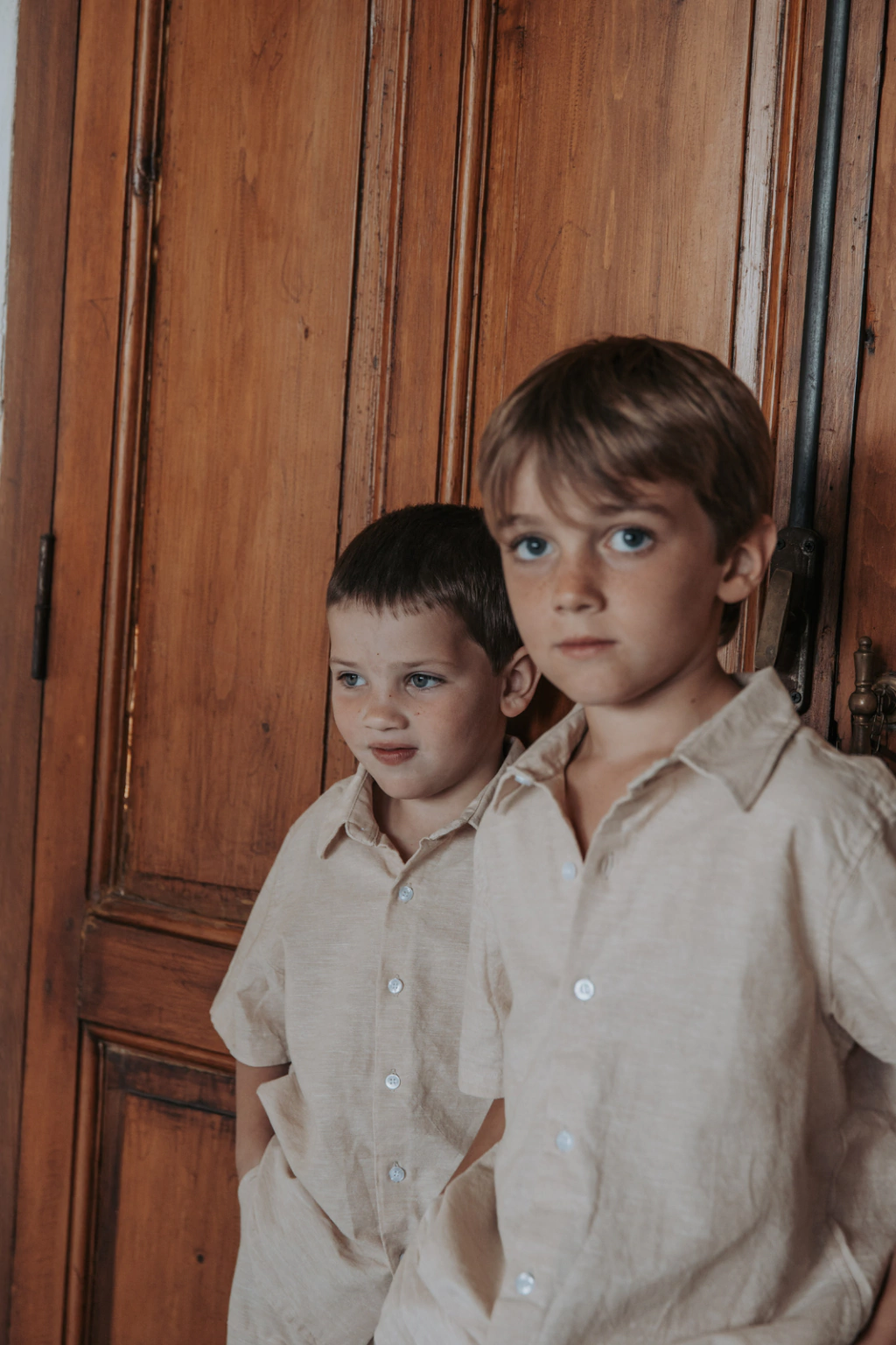 Una clásica de verano: liviana, fresca y confeccionada en lino suave. Con manga corta y calce cómodo, es esa prenda que va con todo y los hace sentir bien desde el primer momento.