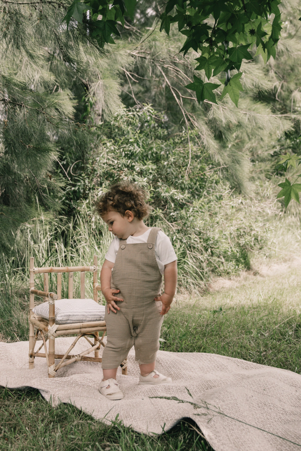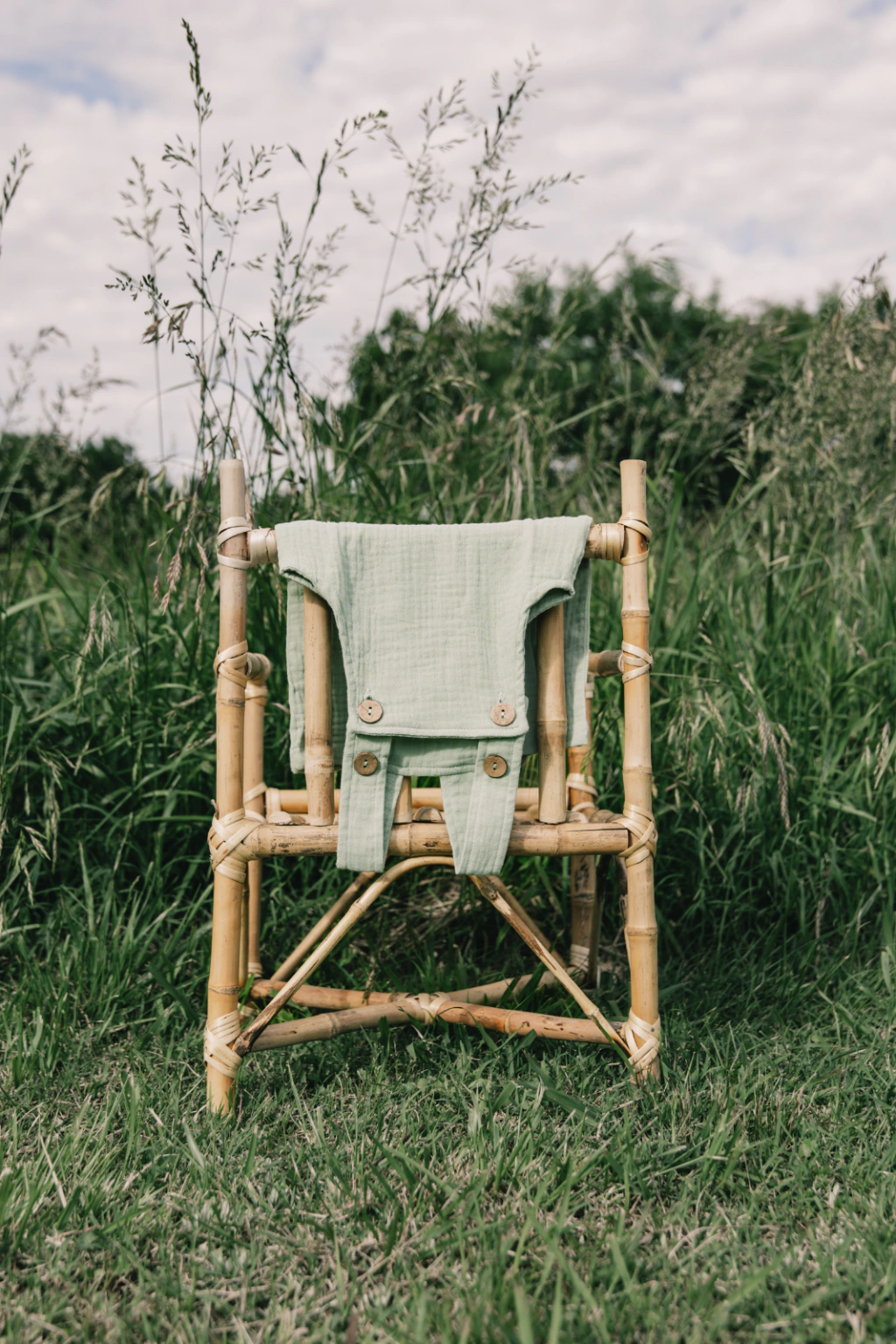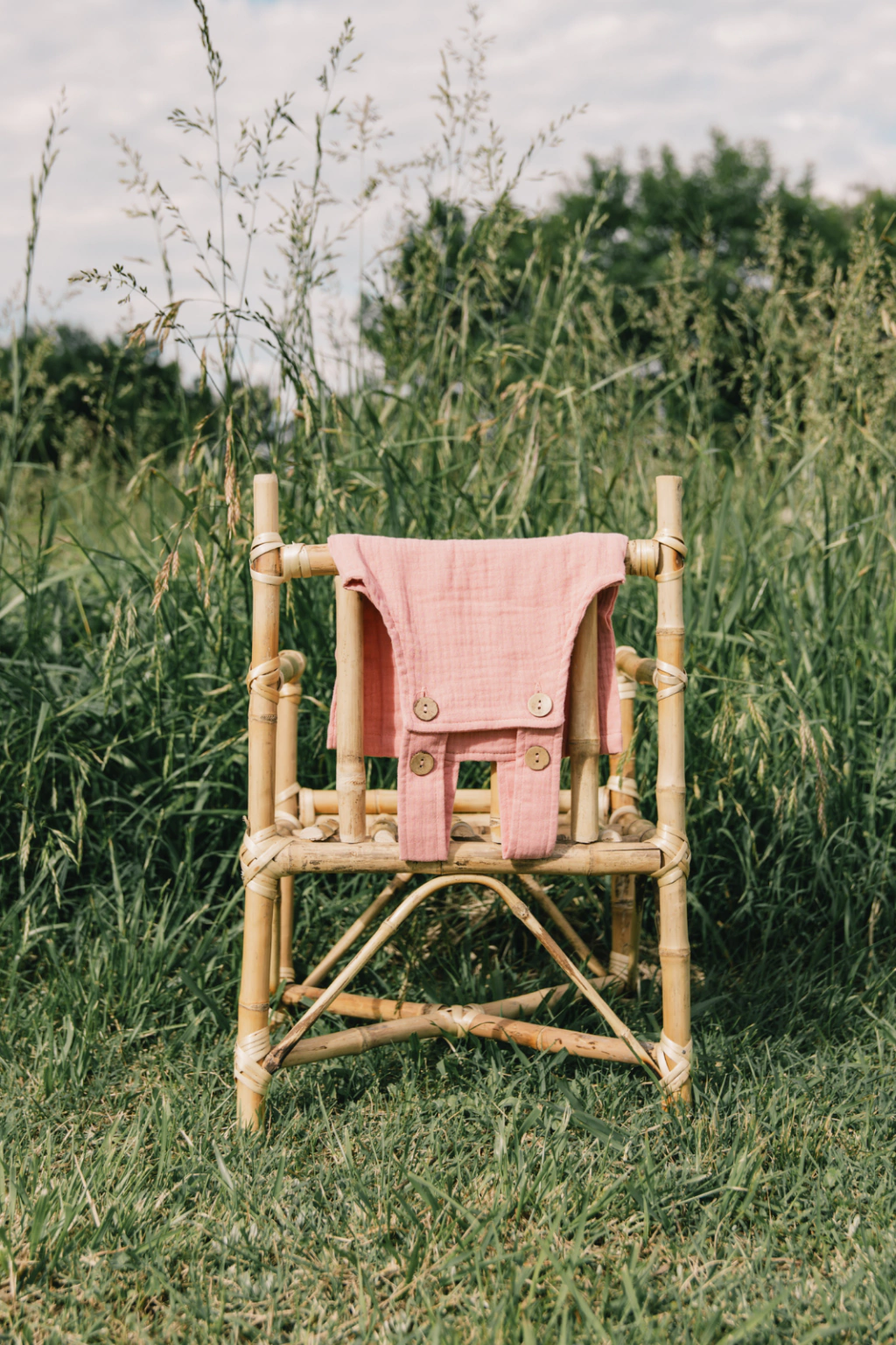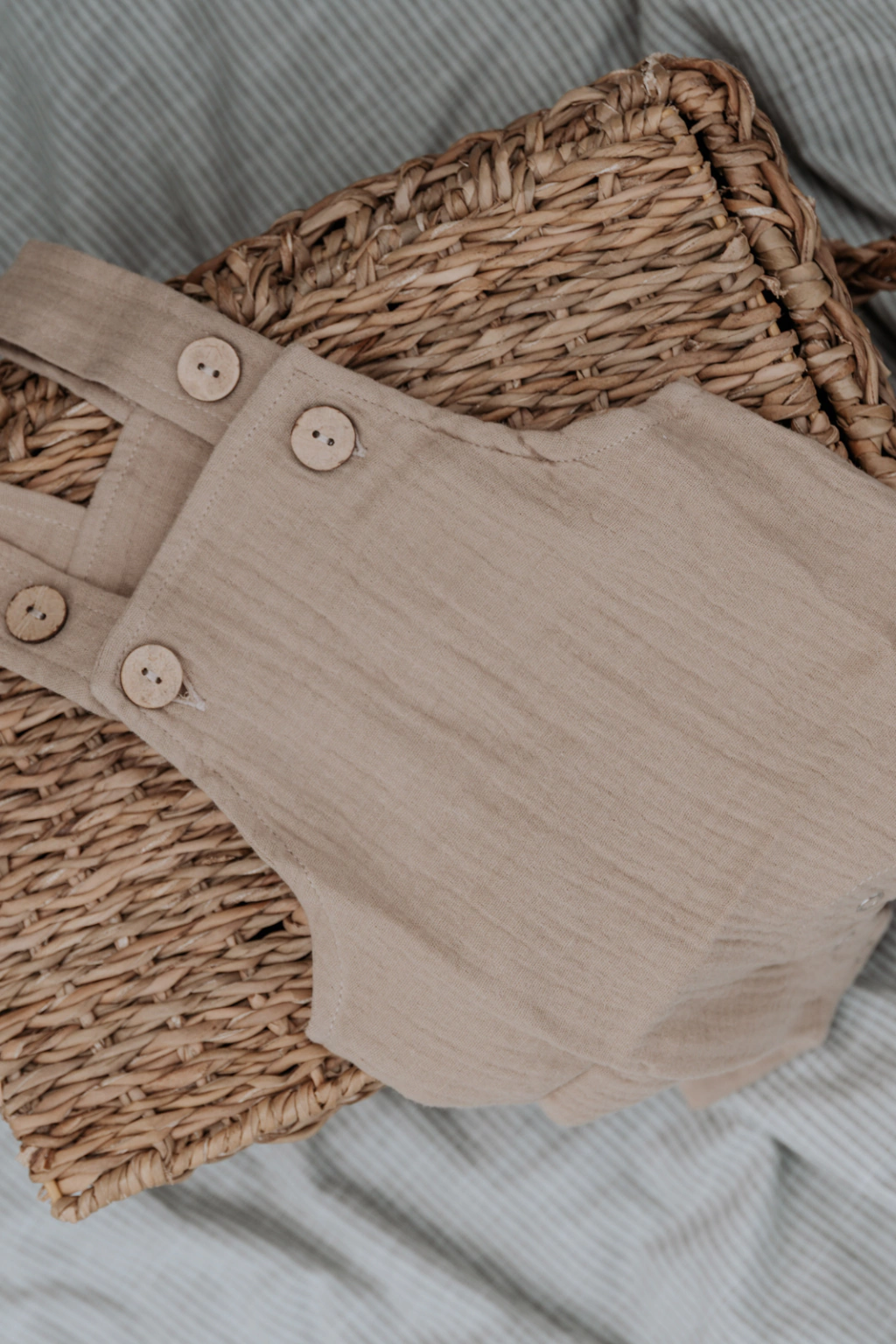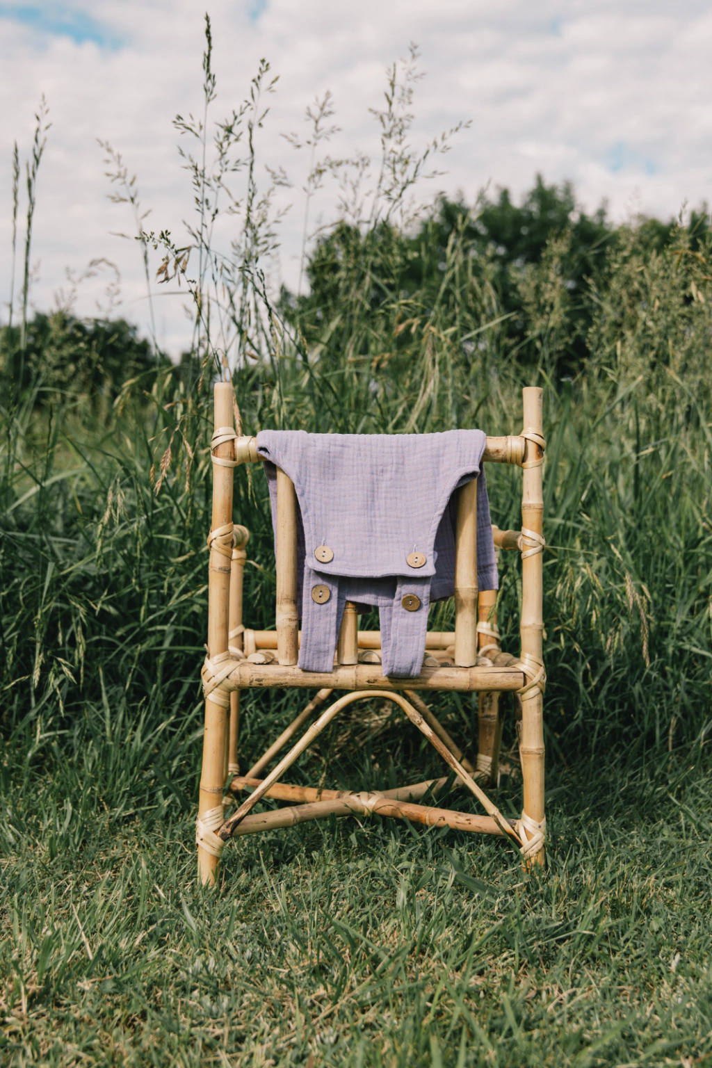 Suave y cómodo, con botones de madera regulables en los tirantes para ajustar el talle y acompañar a los más chicos en cada aventura del día.