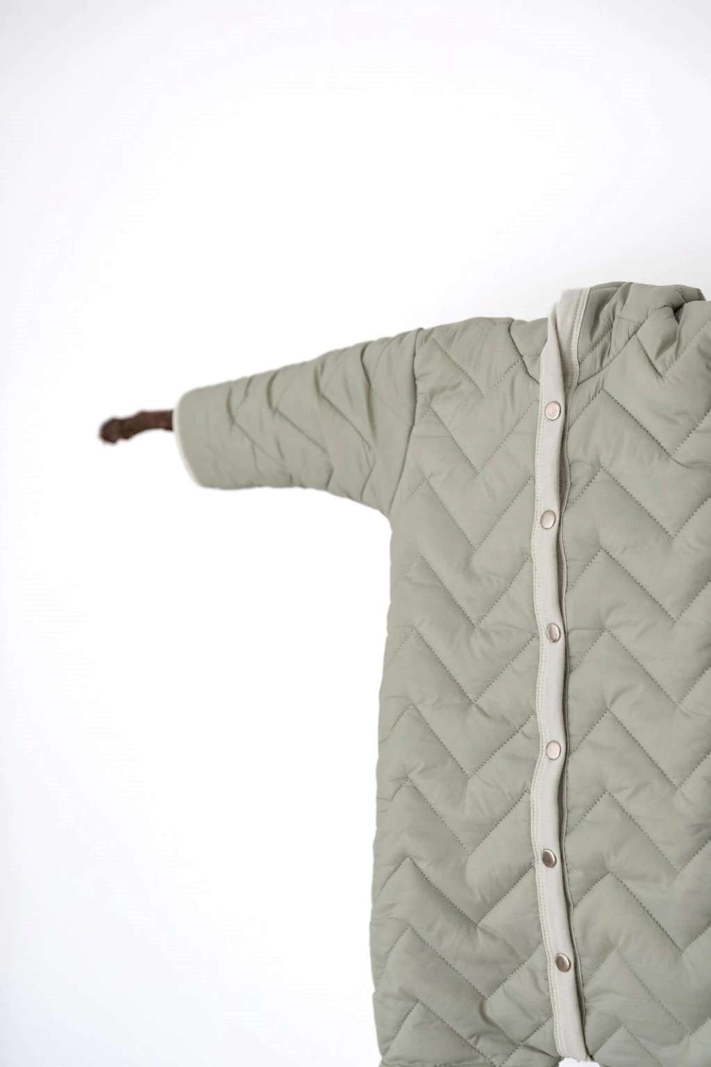 Este enterito de matelassé con capucha es pura suavidad y abrigo. Forrado por dentro, con botones al frente para poner y sacar fácil, y capucha para cubrir bien cuando baja la temperatura. Es cómodo, amplio y perfecto para salir bien abrigados en los días de frío. Disponible desde el talle 3-6 meses hasta el 18-24.