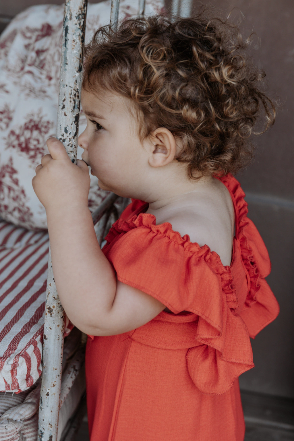 Fresco y liviano, con volados en las mangas que le dan un toque delicado y divertido. Confeccionado en lino cey, una textura resistente, suave, fluida y con una caída elegante.