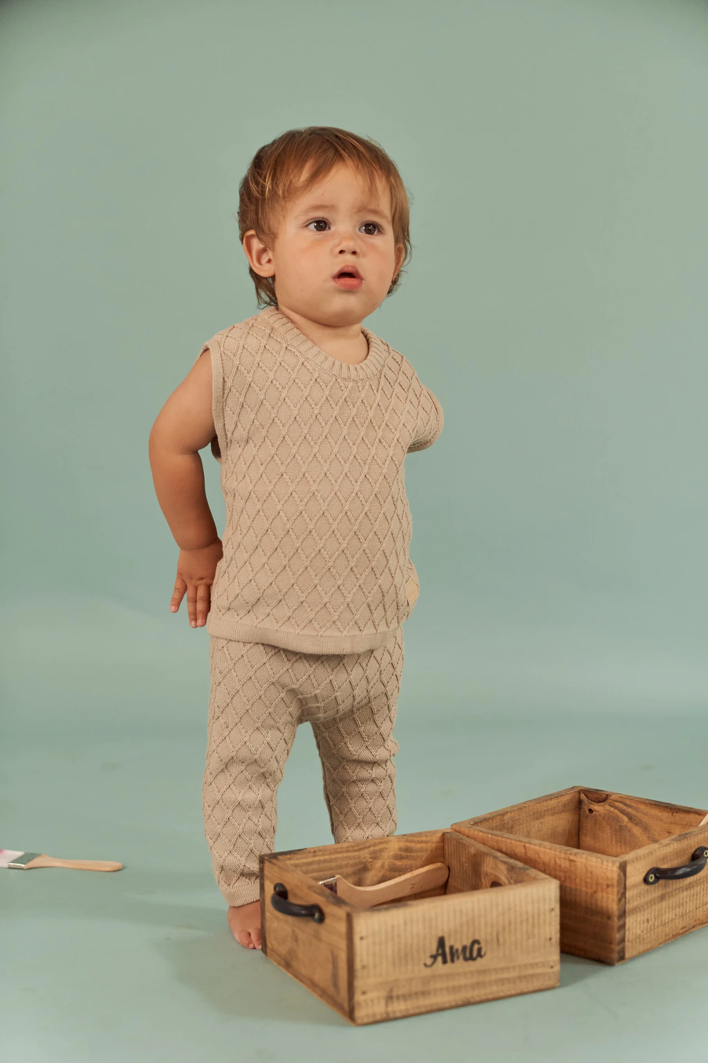 Pantalón Siena confeccionado a punto en Jersey con detalles de rombos. Ideal para ocasiones al aire libre. Perfecto para combinar con el sweater Siena para completar el conjunto.