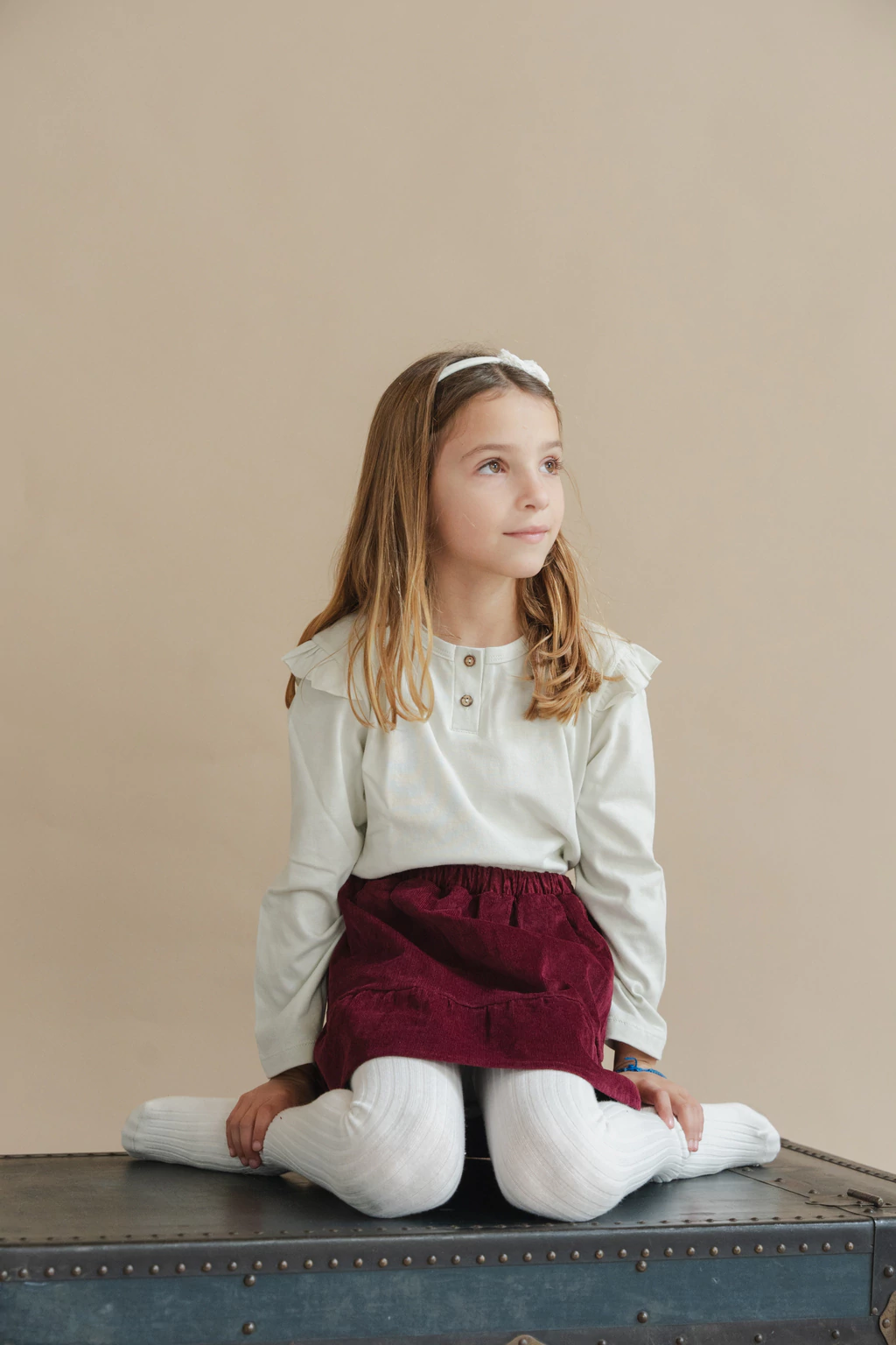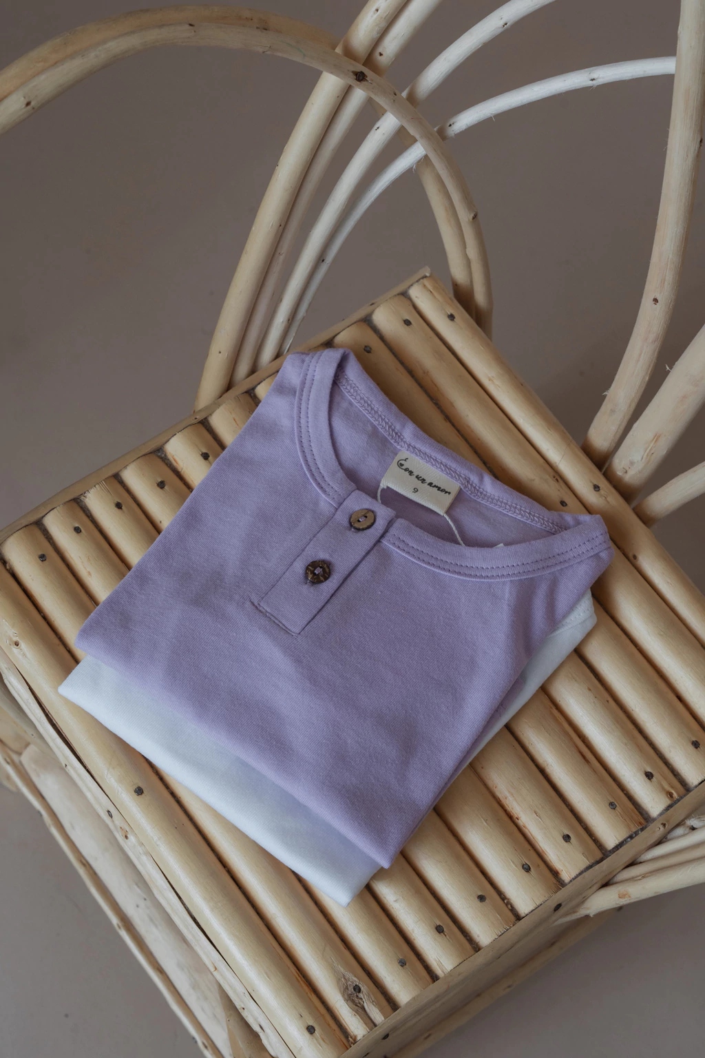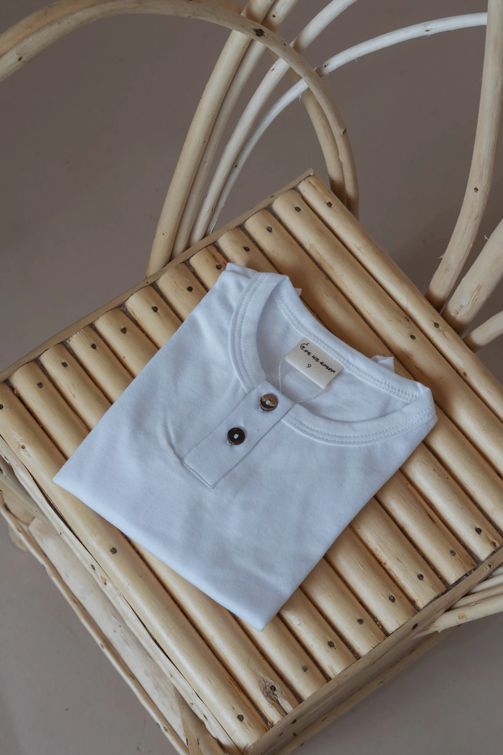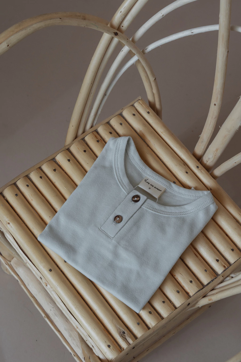 Remera manga larga con cuello redondo y cartera con dos botones de madera.