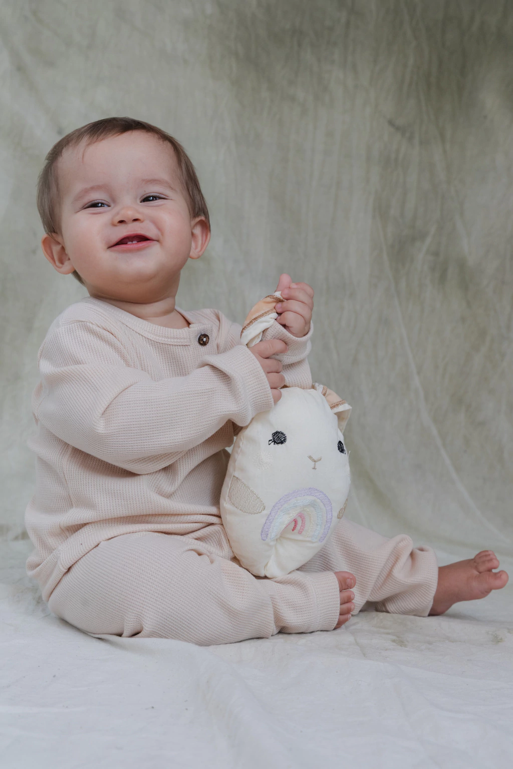 Suavecita y con mucha onda, esta remera de manga larga en waffle es ideal para todos los días. Viene en 7 estampas distintas y en talles desde 3-6 meses hasta 2 años. El tejido es liviano, cómodo y se adapta al movimiento de los más chicos.
