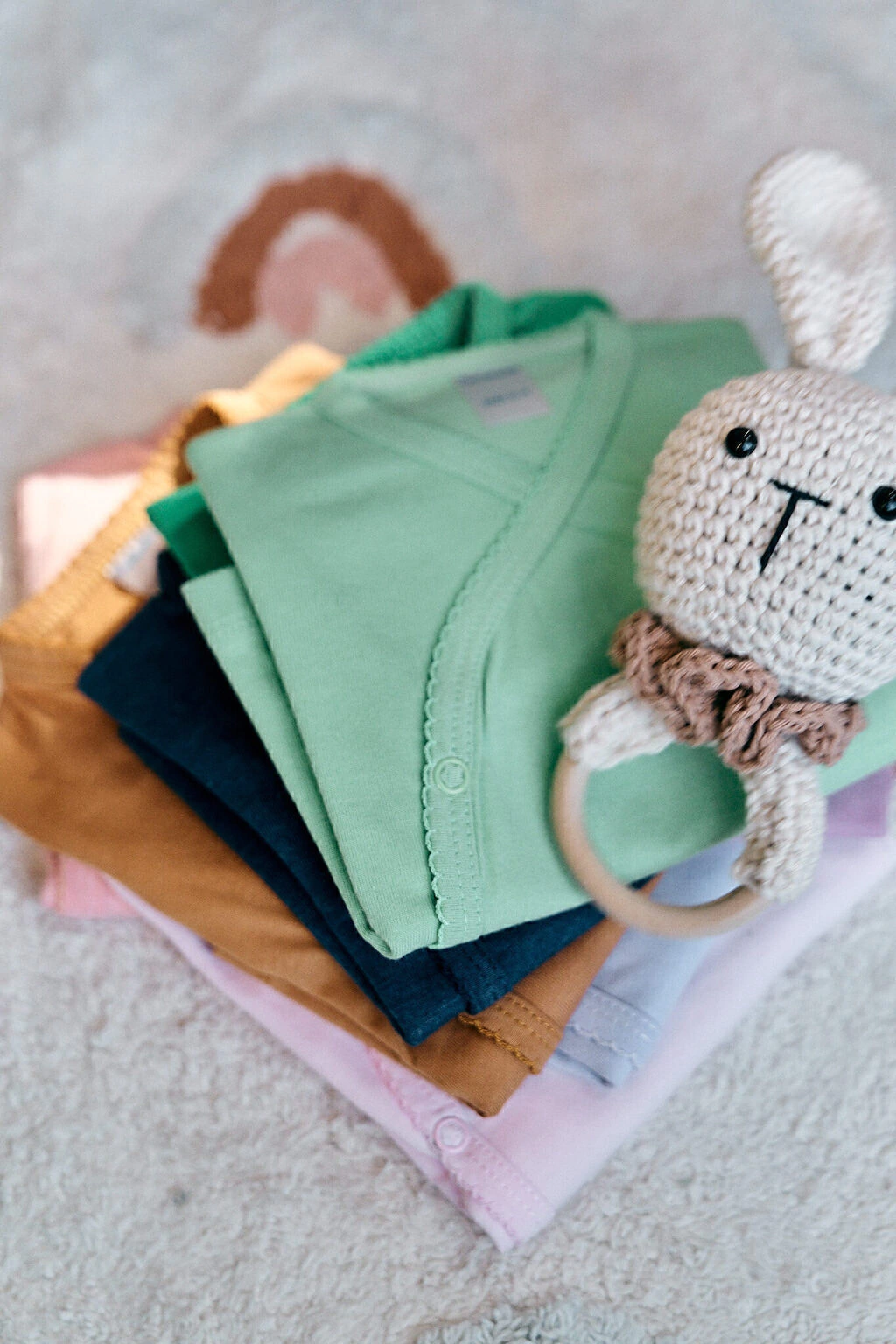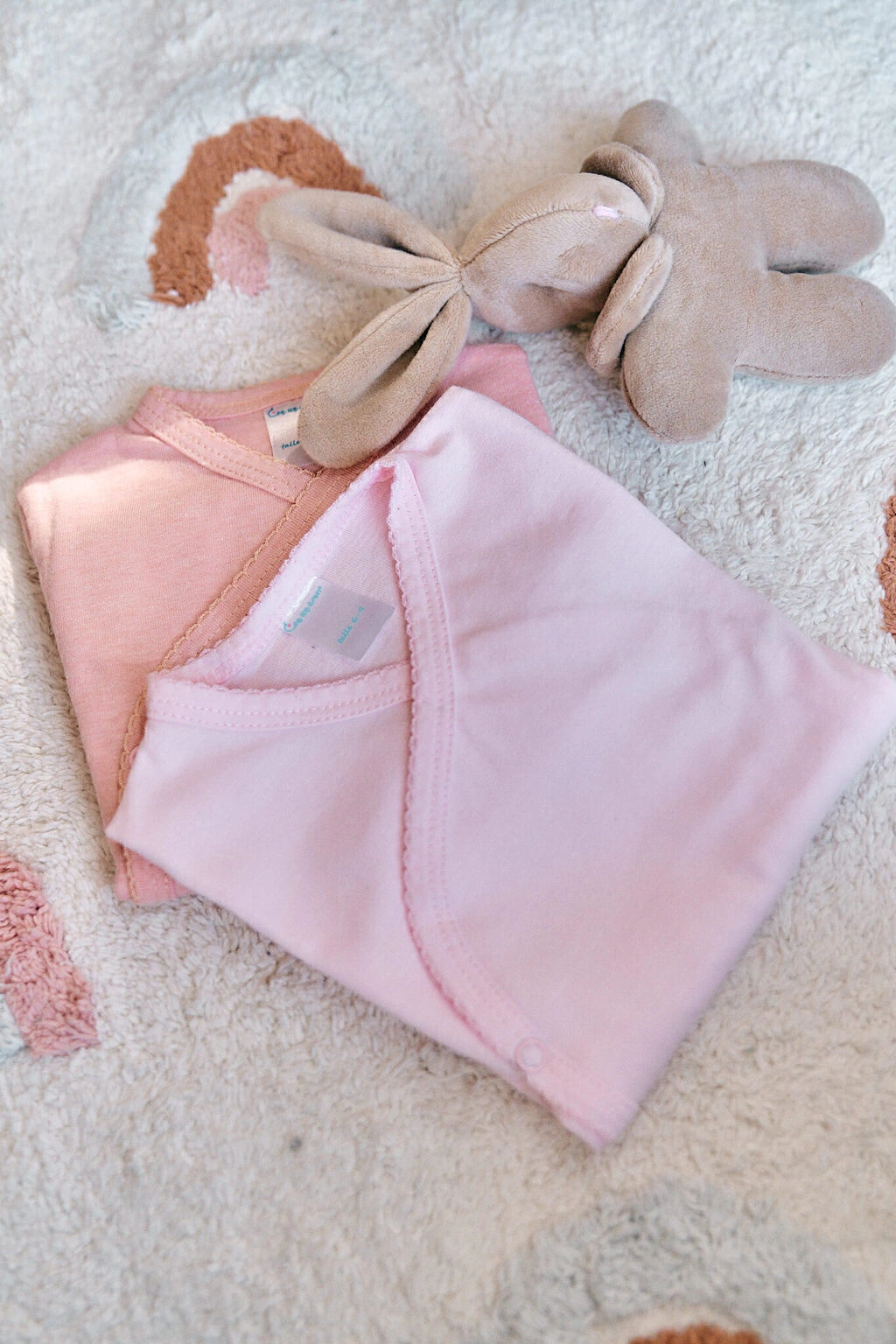 Cuidados: lavar a mano con jabón específico para bebés con ph neutro para cuidar la prenda y la piel del bebé.