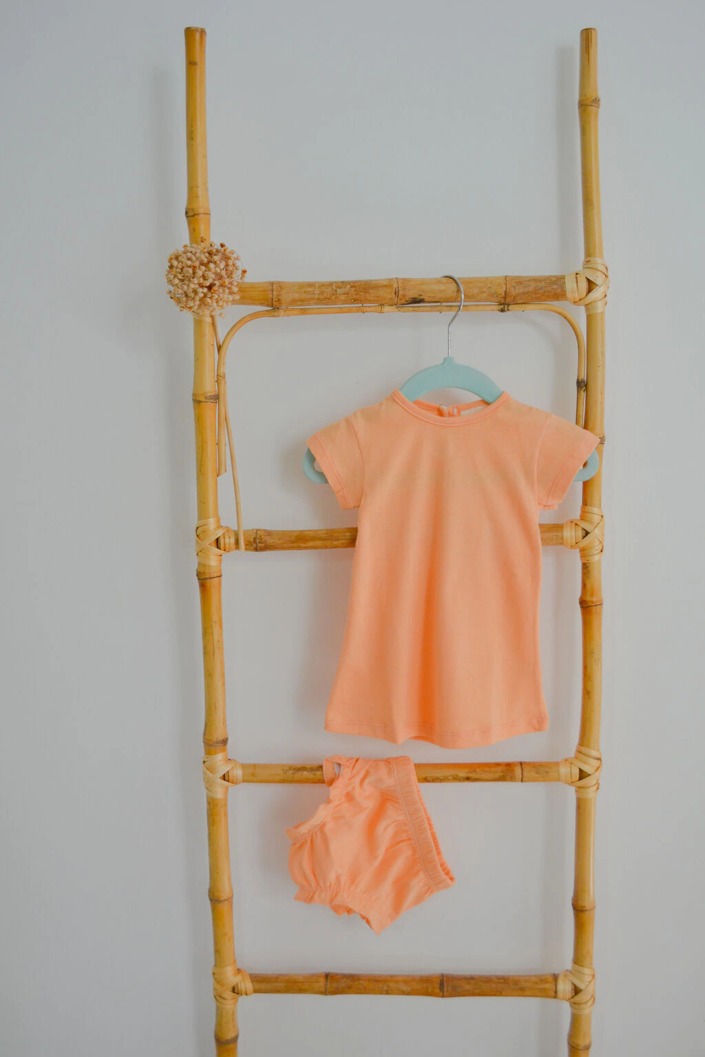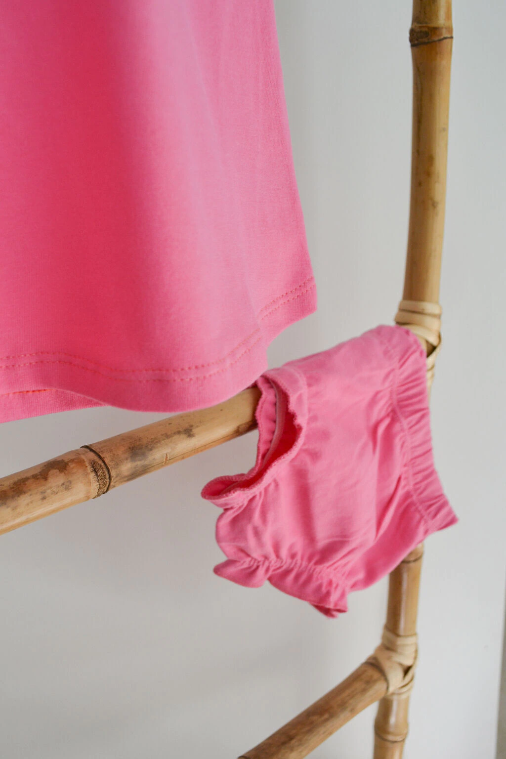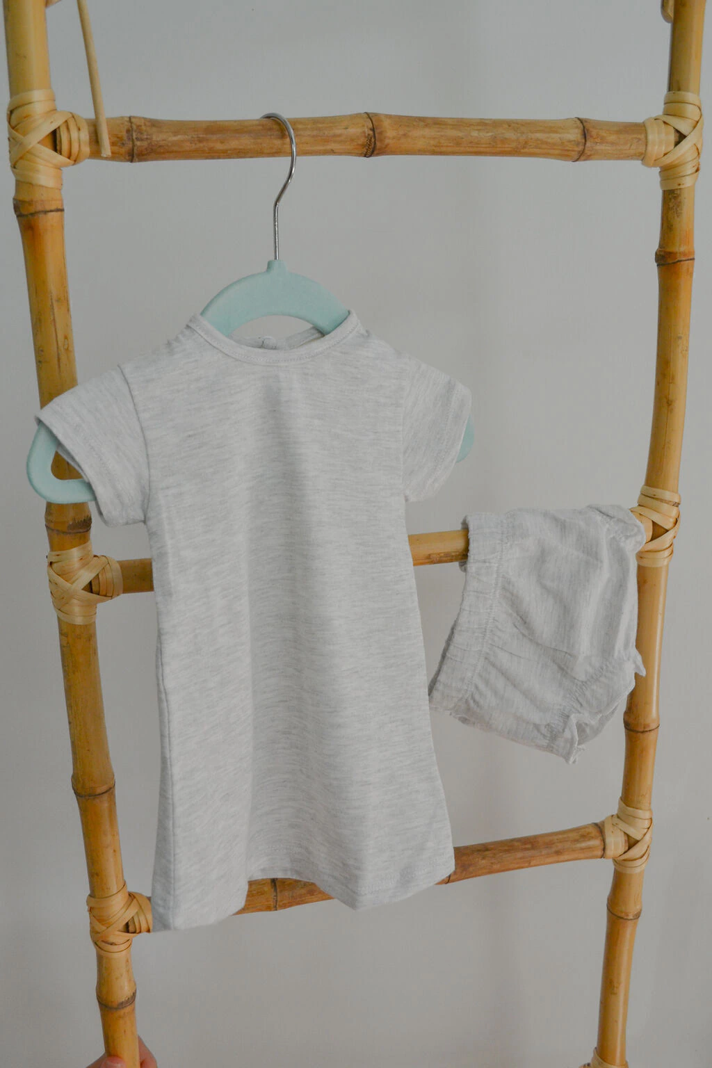 Vestido manga corta liso. Incluye bombachudo Incluye bombachudo hasta el talle 12-18 meses.